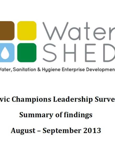 Civic Champions Transforming Sanitation Coverage (Briefing Paper, WEDC. 2014) 14 Sep 2014 WaterSHED Sanitation Abstract: Inspired by local leaders who have motivated their communities to make transformational change in sanitation coverage,...